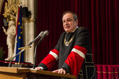 Die diesjährige Festrede von Rektor Prof. Dr. Franz Patay wurde umrahmt von musikalischen Beiträgen des virtuosen MUK-Absolventen Albrecht Menzel an der Violine und der MUK-Lehrenden Sophie Rachlin am Klavier, welche Fritz Kreislers Marche miniature viennoise und Camille Saint-Saëns Introduction et Rondo capriccioso op. 28 präsentierten.