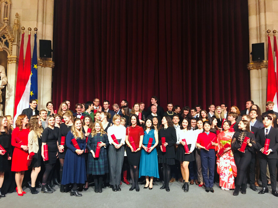 Am Freitag, 29. November überreichte die Universitätsleitung über 70 Abolvent*innen der vergangenen Monate im festlichen Ambiente des Großen Festsaals im Wiener Rathaus ihre akademischen Grade Bachelor und Master of Arts.