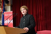 Bevor der offizielle Teil der Feier wie gewohnt mit der Österreichischen Bundeshymne sowie der Europahymne abgeschlossen wurde, richtete noch die Vorsitzende der Studierendenvertretung Iulia Moldovan, BA das Wort an die erfolgreichen Studienabgänger*innen und wünschte allen einen tollen Start in den neuen Lebensabschnitt.