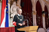 Auch in Vertretung des Bürgermeisters Dr. Michael Ludwig erfolgten einleitende Grußworte der amtsführenden Stadträtin für Kultur und Wissenschaft Mag.a Veronica Kaup-Hasler, die die Leistungen und Kreativität der Studierenden und Absolvent*innen der einzigen Universität der Stadt Wien besonders lobte.