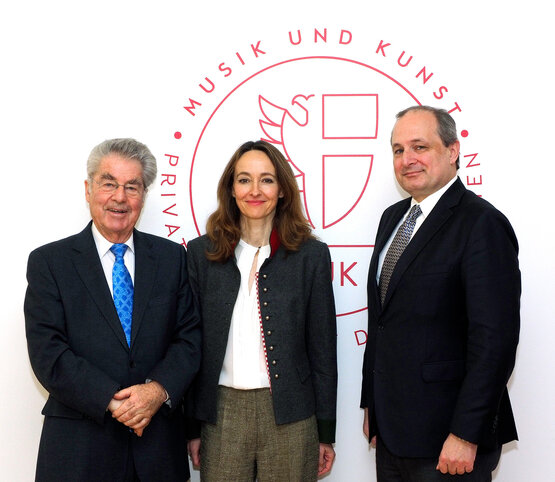 Mit einem anregenden Vortrag von Dr. Heinz Fischer, Bundespräsident a.D. der Republik Österreich, feierte die MUK am 22. Januar 2018 den Auftakt einer Reihe von Veranstaltungen als Beitrag zu den Aktivitäten des Bundeskanzleramtes (oesterreich100.at) zum Gedenkjahr 2018. Unter dem Titel Zur Geschichte der Zweiten Republik im Spiegel von Kunst und Kultur skizzierte Dr. Heinz Fischer als Koordinator von oesterreich100 die wichtigsten Stationen von 100 Jahren Republik und stellte sich in der anschließenden, lebhaften Diskussion den zahlreichen Fragen der Studierenden.