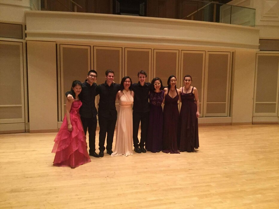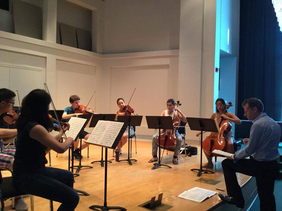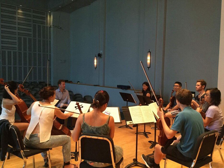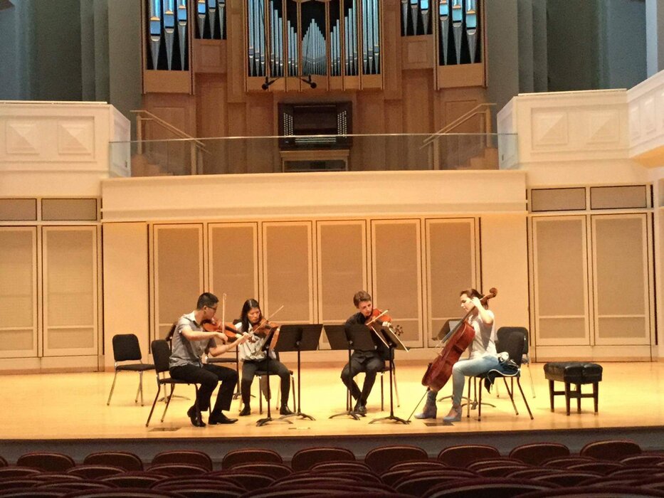 Am nächsten Tag startete auch schon das dichte Kammermusikprogramm. Für Proben wurden uns durchgehend Konzertsäle zur Verfügung gestellt. Als Quartett erhielten wir Unterricht bei den Mitgliedern des Pacifica Quartet. Gleichzeitig wurde mit einem Streichquartett von der Jacobs School das Streichoktett von Mendelssohn-Bartholdy erarbeitet. Auch hier erhielten wir Coaching von mehreren ProfessorInnen. Weiters durften wir auch bei anderen Lehrveranstaltungen zuhören, darunter das wöchentlich stattfindende Kammermusikseminar, wo alle der sechs „serious student quartets“ ihr Programm, an dem sie gerade arbeiten, vorspielen und sich anschließend gegenseitig Feedback geben. Dies ist, wie ich finde, eine sehr sinnvolle Lehrveranstaltung. Der krönende Abschluss der Projektwoche war dann ein erfolgreiches Konzert in der schönen, gut besuchten Auer Hall, die 800 Plätze hat.