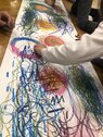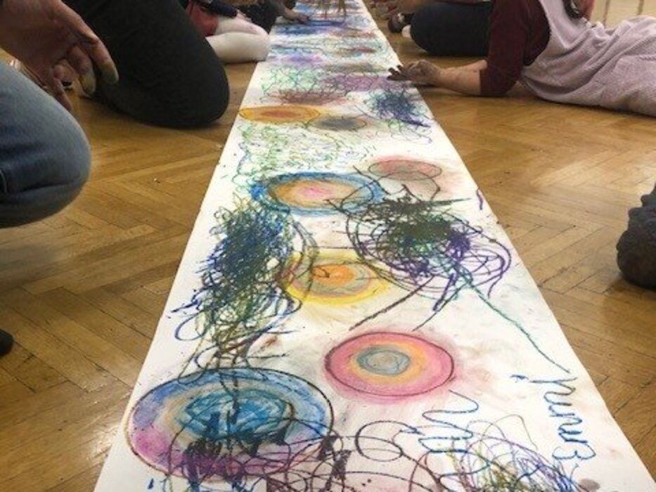 Nach einer kurzen Pause hieß es: Musikalische Flussgeschichten — Was erlebt ein Fluss von der Quelle bis zur Mündung?. Unter der Leitung von Edith Wregg konnten die Kinder das Musikstück Die Moldau vom tschechischen Komponisten Bedřich Smetana hören, fühlen und malen. Auch die Wiener Donau wurde musikalisch, kreativ und körperlich erfahren.