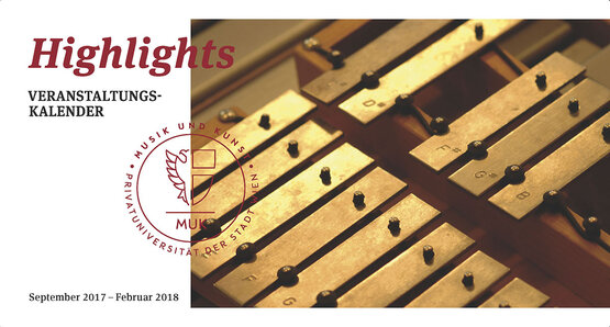 Soeben ist der Highlight-Kalender für das Wintersemester erschienen und liefert einen Überblick über das vielfältige Programm unserer Universität. Der Folder liegt ab sofort zur freien Entnahme an allen MUK-Standorten auf, Abonnentinnen und Abonnenten erhalten ihr persönliches Exemplar in den kommenden Tagen per Post.
