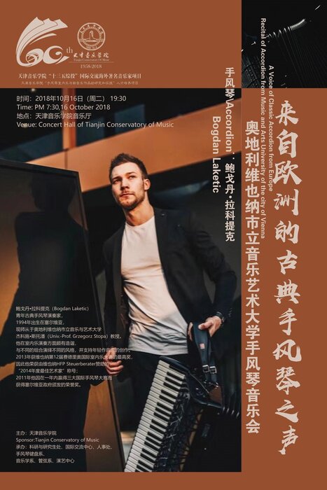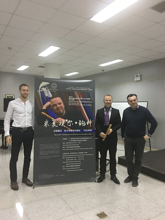 Michael Posch, Dekan der Fakultät Musik und Studiengangsleiter Alte Musik, Grzegorz Stopa, Professor für Akkordeon an der MUK und sein Student Bogdan Laketic wurden Mitte Oktober ans Tianjin Conservatory of Music eingeladen.