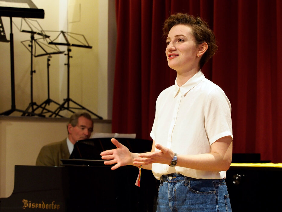 Im Rahmen der öffentlichen Preisverleihung trugen alle Gewinnerinnen in Anwesenheit von Jurmann-Interpret Max Raabe ausgewählte Lieder noch einmal vor. Dabei wurden sie von Korrepetitor László Kövi tatkräftig am Klavier unterstützt.