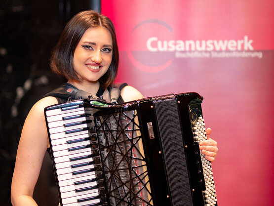 Die Studierenden aus der Akkordeonklasse von Grzegorz Stopa können mit großen Wettbewerbserfolgen aufwarten: Sophie Herzog wurde mit dem Maria-Ladenburger-Förderpreis für Musik 2024 ausgezeichnet, Elisabeth Müller erhält den Ersten Preis beim Internationalen Akkordeonwettbewerb im chinesischen Tianjin.