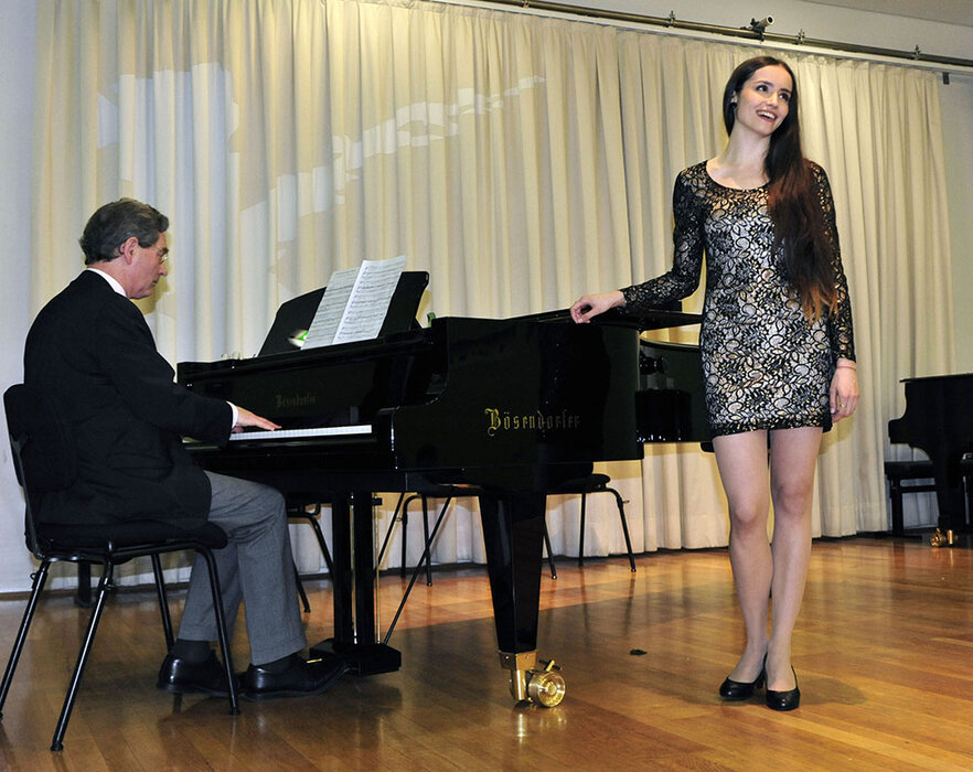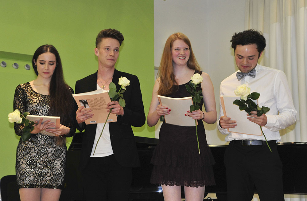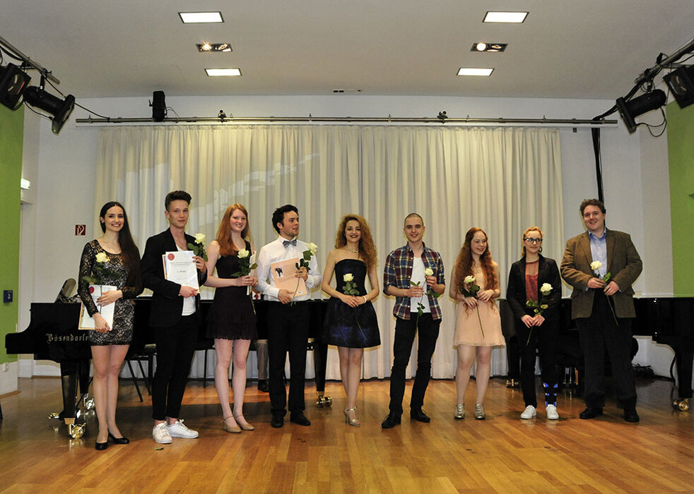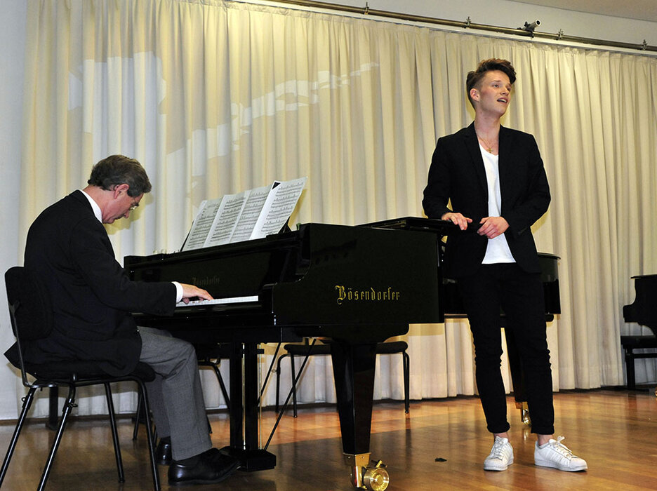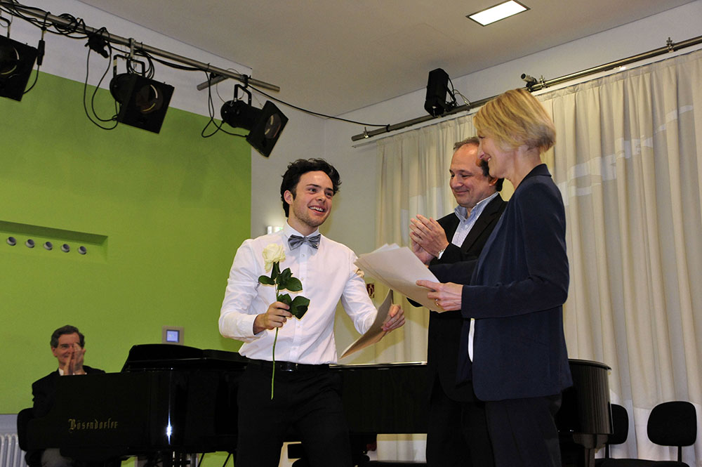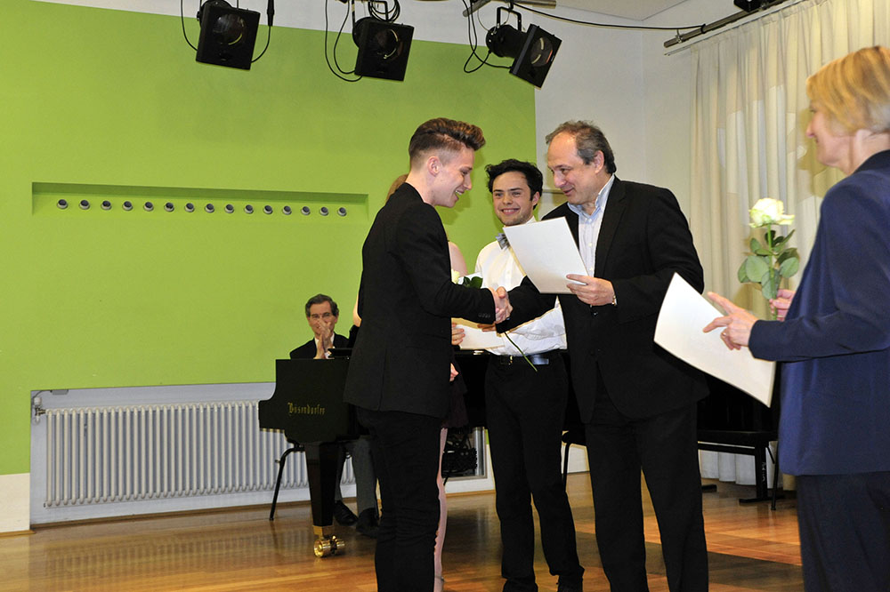Im Rahmen der öffentlichen Preisverleihung trugen alle GewinnerInnen in Anwesenheit von Yvonne Jurmann ausgewählte Lieder noch einmal vor. Dabei wurden sie von Korrepetitor László Kövi tatkräftig am Klavier unterstützt.