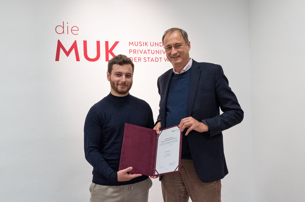 Über den Ersten Preis, ein Stipendium über € 500,- pro Monat, darf sich in diesem Studienjahr Adrian Autard freuen. Der Zweite Preis, ein Stipendium in der Höhe von € 300,- pro Monat, geht an Martina Neubauer. Die Stipendien, beginnend mit 1. September 2022, haben eine Laufzeit von 12 Monaten. Beide Sänger*innen haben die Jury mit ihrer Leistung beeindruckt und ihrer starken Performance überzeugt.