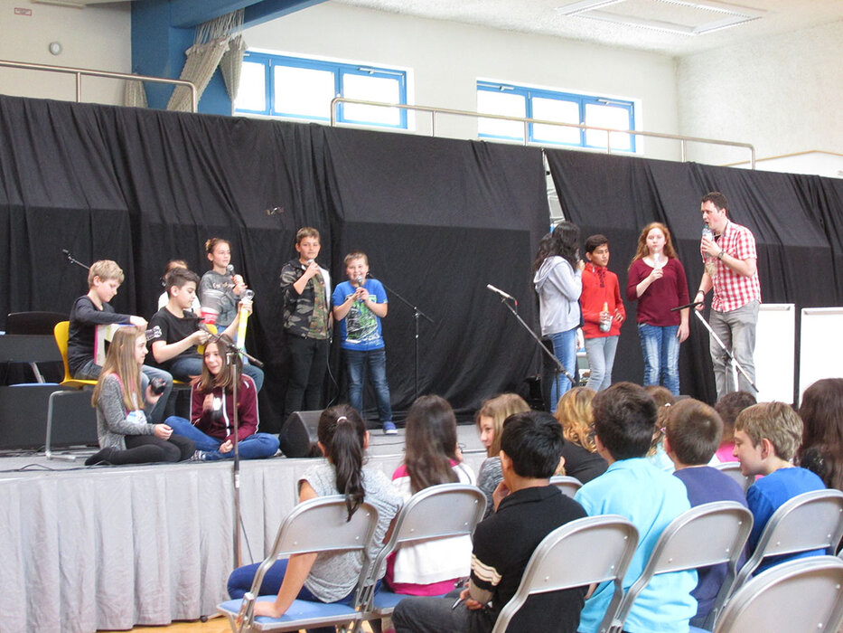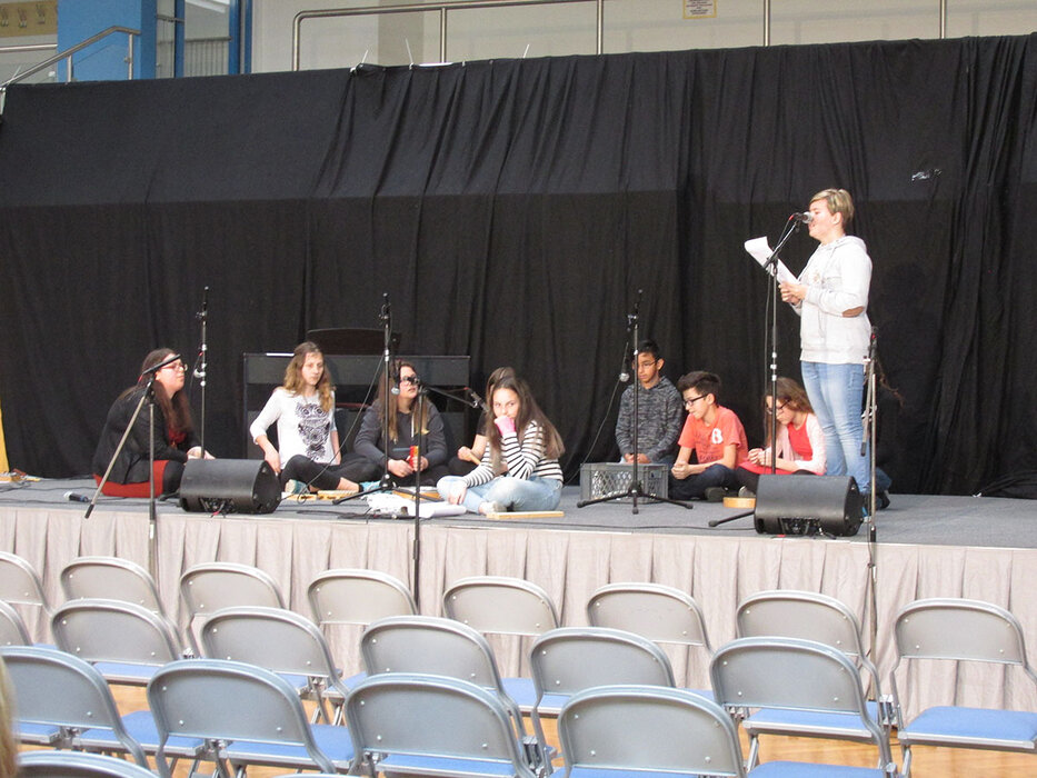 Mit 72 Kindern der 1. und 2. Klassen wurde gemeinsam zum Thema „Müll“ ein Elementares Musiktheaterstück entwickelt und auf die Bühne gebracht.