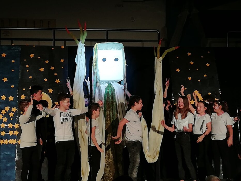 Gekonnt mit Licht und Ton in Szene gesetzt durch Hans Jürgen Neuzil und seinem Team von Schülerinnen und Schülern der 3. Klassen, glänzten die Kinder mit ihrer Fantasie, ihrem Können, mit Konzentration und Begeisterung und bewiesen einmal mehr, wozu sie in der Lage sind, wenn ihre Kreativität gefragt ist und einen künstlerischen Ausdruck findet.
