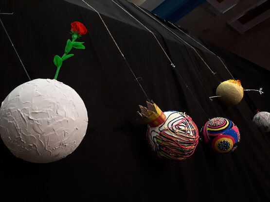 Basierend auf der Geschichte Der kleinen Prinz von Antoine de Saint Exupéry entwickelte der 1. Jahrgang MAE in diesem interdisziplinären Vermittlungsprojekt gemeinsam mit 72 Kindern der Neuen Mittelschule Pottendorf und ihren Lehrenden das Theaterstück Von Planet zu Planet. Im Verlauf der mehrtägigen Arbeitsphase wurden die einzelnen Szenen mit Musik, Theater und Tanz unter Einbeziehung der Ideen der Schüler*innen gestaltet. Thematisch standen im Mittelpunkt fünf Planeten, die mit viel Fantasie zum Leben erweckt wurden und eindrucksvoll Stellung zu brennenden Themen wie Macht, Geld, Anforderungen einer beschleunigten Welt und Grundlagen von Freundschaft und Zusammenleben nahmen.