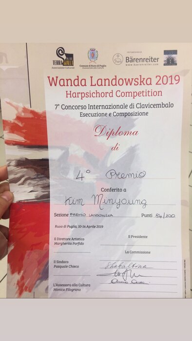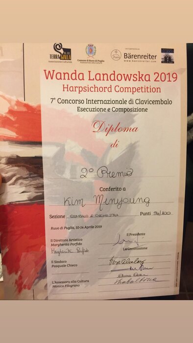 Von 8. bis 14. April 2019 fand zum siebenten Mal der Internationale Cembalo-Performance und –Kompositions Wettbewerb "Wanda Landowska Harpsichord Competition 2019" in Ruvo di Puglia (Bari/ Italien) statt. Der Wettbewerb ist der polnischen Cembalistin Wanda Landowska gewidmet und hat sich mittlerweile zu einem der größten Wettbewerbe für Cembalo mit TeilnehmerInnen aus aller Welt entwickelt. Ziel des Wettbewerbs ist es, Anreiz für eine junge Generation an Cembalisten zu schaffen, das Instrument zu studieren und neue Musik zu komponieren.