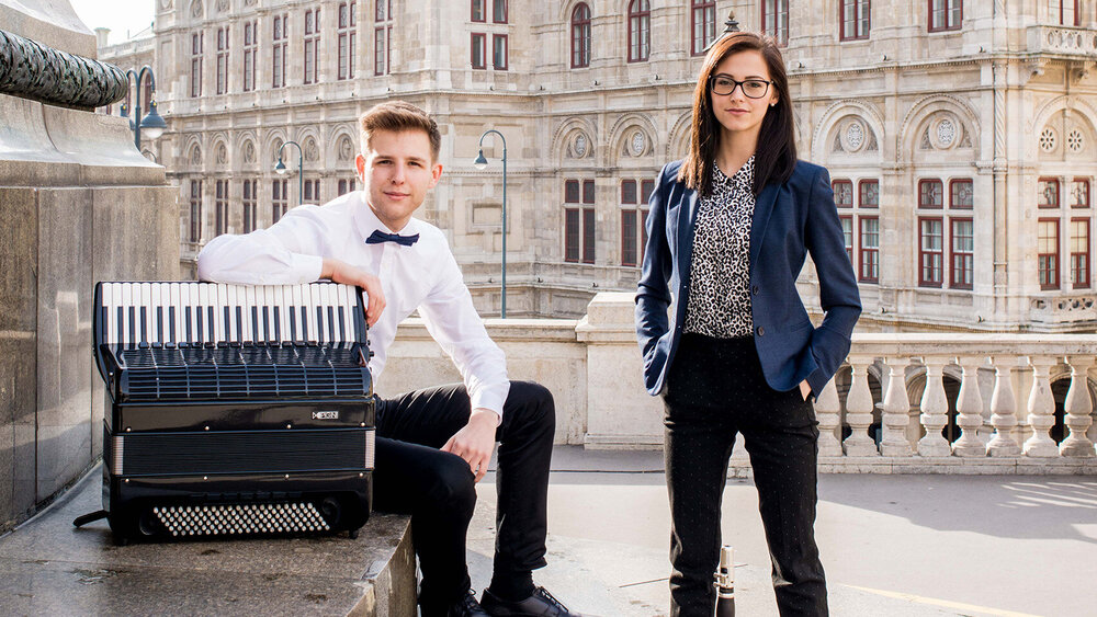 Klarinettistin Johanna Gossner und Akkordeonist Damian Keller sowie Schlagwerker und Arrangeur Tobias Meissl haben den Soundtrack zur neuen „Backademie“ der Vollpension kreiert.