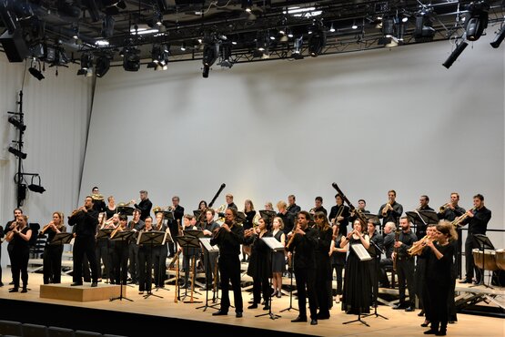 Unter der musikalischen Leitung von Andreas Helm und Alfredo Bernardini absolvierten mehr als 60 Studierende und Lehrende der Institute für Alte Musik und Aufführungspraxis der Musik und Kunst Privatuniversität der Stadt Wien, der Anton Bruckner Privatuniversität Linz, der Universität Mozarteum Salzburg und der Kunstuniversität Graz eine viertägige Konzert-Tournee.