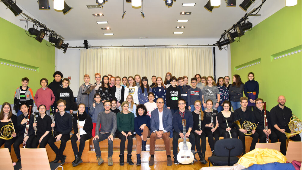 Rektor Dr. Andreas Mailath-Pokorny begrüßte bei „MUK – Ganz nah dran!“ Schüler*innen des Bundesgymnasiums und Bundesrealgymnasiums Albertgasse (BGRG 8) zu einer Konzertmatinée mit Instrumentenvorstellung.