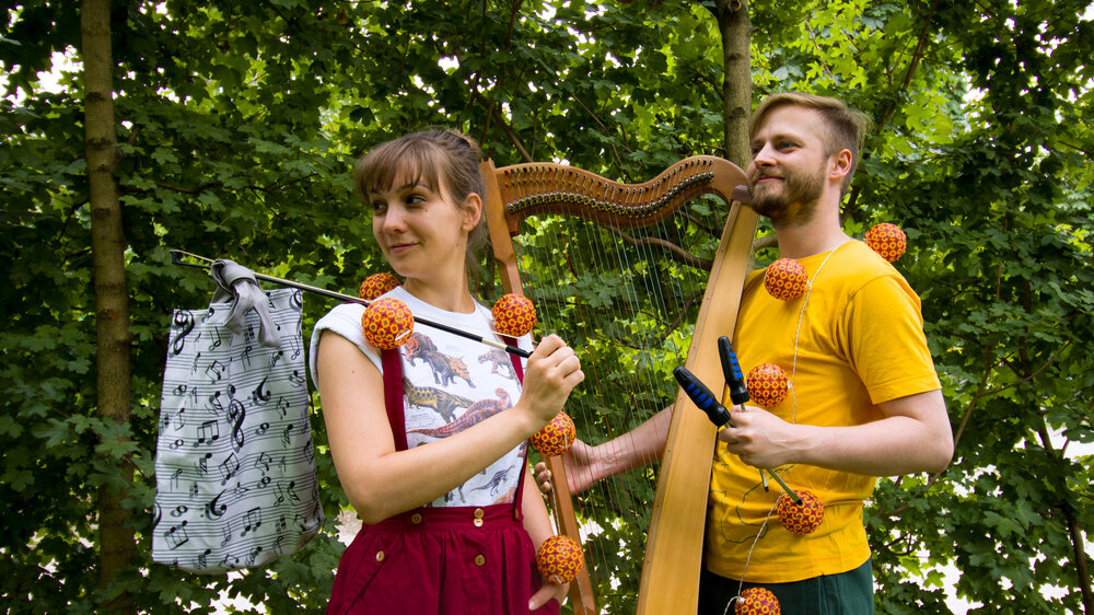 Der Inhalt ist schnell erzählt: Laura und Johannes erleben alle möglichen Alltagsabenteuer. Dabei entdecken sie nicht nur Bienenstöcke und Mamas Handtasche, sondern kreieren mit ihrer Harfe, Alufolie, Schraubenzieher und Unterstützung aus dem Publikum neue Klänge und machen dabei auch vor Improvisation und grafischer Notation nicht halt.