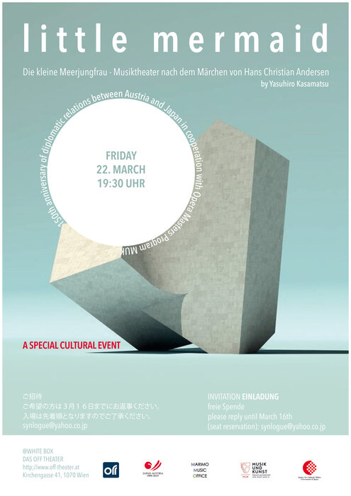 Anlässlich der bereits 150 Jahre anhaltenden diplomatischen Beziehungen zwischen Japan und Österreich wirken zahlreiche Studierende der MUK unter der Leitung von Akiko Nakajima an dieser Kammeroper des japanischen Komponisten Yasuhiro Kasamatsu mit.