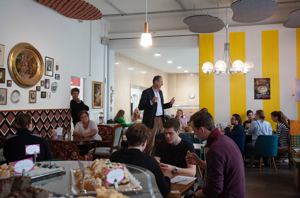 Für Studierende besteht im straßenseitigen Raum übrigens keine Pflicht zur Konsumation: Der gemütlich mit Vintage-Möbeln ausgestattete Raum kann jederzeit zur Lektüre, für Gespräche oder auch als Treffpunkt genutzt werden. Tipp: Bitte auf rosa Fähnchen achten…