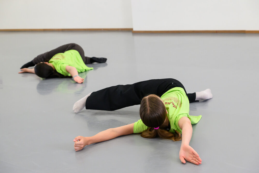 Bei The Floor is Your Friend! wurde der Boden zum Tanzpartner: Durch Rollen, Gleiten und kreative Aufgaben lernten die Teilnehmenden den Tanz mit dem Boden ganz neu kennen und entdeckten neue Bewegungsmöglichkeiten mit Techniken aus dem zeitgenössischen Tanz.
