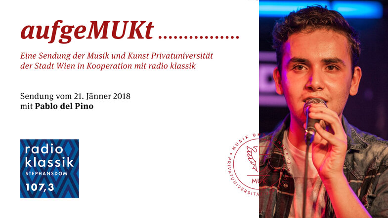 In der 23. Folge der Sendung von radio klassik steht der Jazz-Gesang im Mittelpunkt. Pablo del Pino studiert seit 2016 an der MUK. Johannes Herrlich betreut neben seinem Lehrauftrag für Jazz-Posaune unter anderem ein Vocal Ensemble, wo er auf Pablo del Pino aufmerksam wurde.