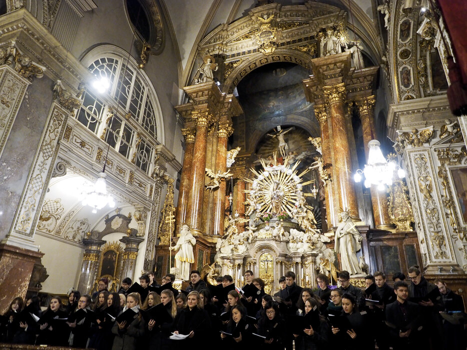 Der Chor der MUK präsentiert in dieser Saison ein Konzert zur Fastenzeit im stimmungsvollen Ambiente der Franziskanerkirche. Das Programm nimmt Sie mit auf eine eindrucksvolle und kontrastreiche Klangreise durch das 20. bis ins 21. Jahrhundert: Leonard Bernsteins rhythmisch packende Missa Brevis und Francis Poulencs ergreifende Fastenzeit-Motetten Quatre motets pour un temps de pénitence bilden dabei die beiden Hauptstationen, die von Olivier Messiaens mystisch strahlendem O sacrum convivium und den kontemplativ schwebenden Klängen von Arvo Pärts Da Pacem Domine sowie Ola Gjeilos Ubi caritas athmosphärisch ergänzt werden.