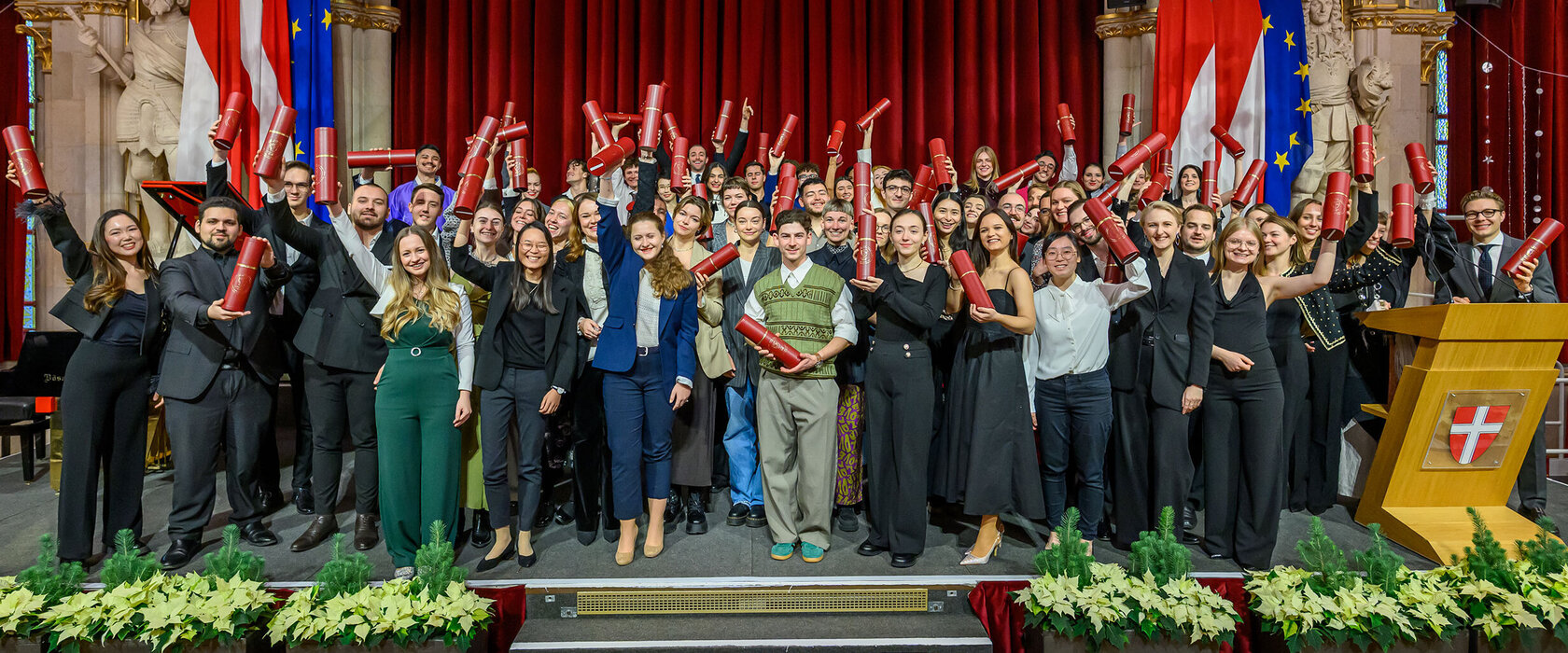 Bei der diesjährigen Sponsionsfeier der MUK am Donnerstag, 27. November wurden den Absolvent*innen des letzten Studienjahrs ihre akademischen Grade Bachelor und Master of Arts im feierlichen Ambiente des Großen Festsaals im Wiener Rathaus verliehen.