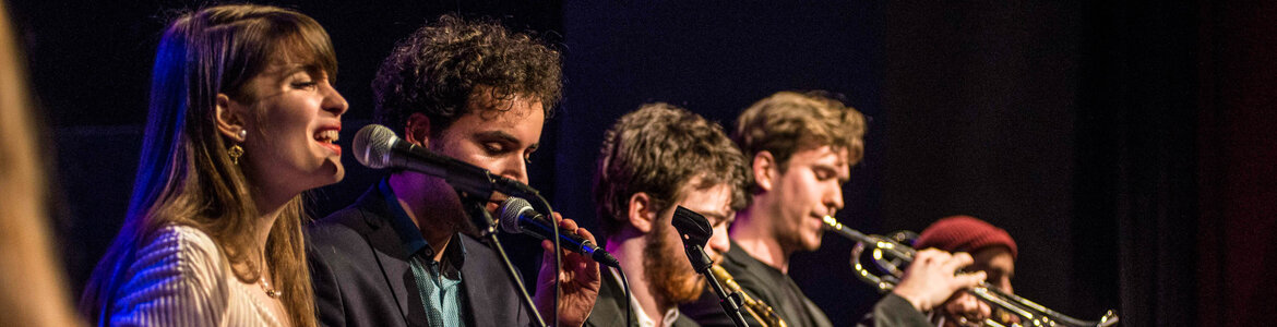 Die Studierenden erhalten zudem Gelegenheit, auf den ganz großen Bühnen zu stehen – beispielsweise durch unsere Kooperationen mit dem berühmten Jazz & Music Club Porgy & Bess, den dort stattfindenden MUK.jazz.afternoons und dem jährlichen MUK.jazz.festival, aber auch bei Veranstaltungen in großen Konzerthäusern wie beispielsweise dem traditionsreichen Wiener Musikverein. Hinzu kommen die MUK.jazz.sessions im Jazzcafé ZWE, regelmäßige Konzertabende im Bösendorfer Salon, innovative Konzertreihen im Reaktor Wien und zahlreiche weitere Kooperationen mit Institutionen und Veranstalter*innen, um Auftrittserfahrung im professionellen Umfeld zu sammeln und Kontakte zu knüpfen.