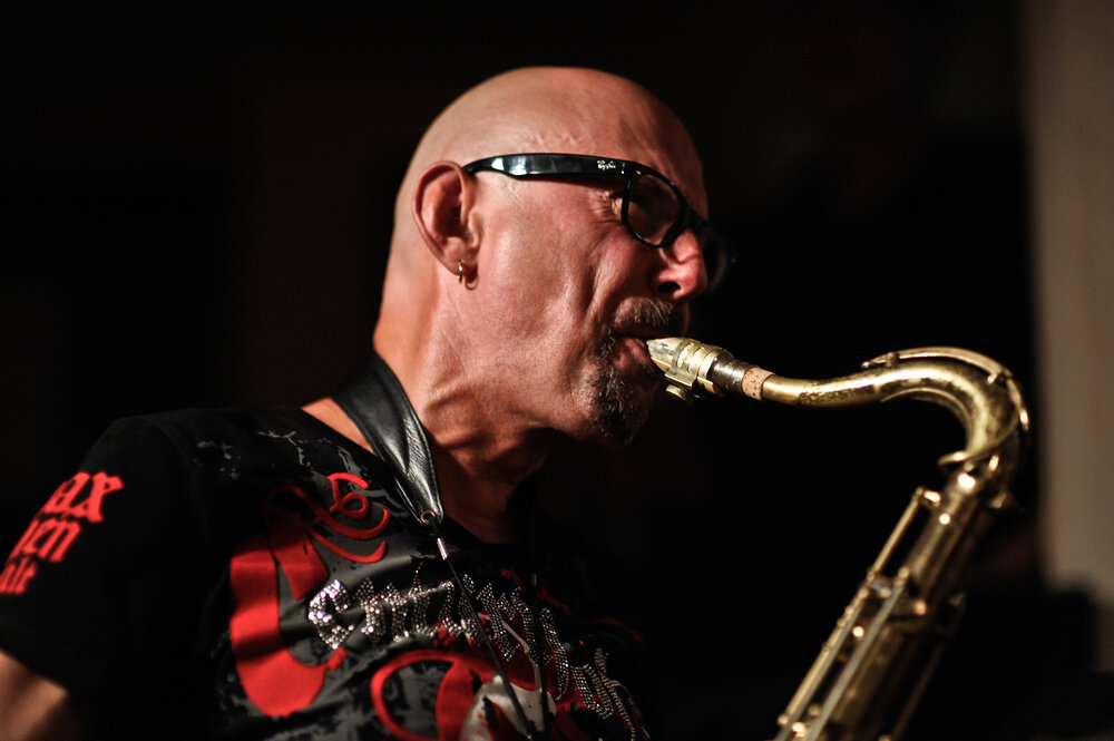 Am Ende des Sets stoßen die Kollegen Thomas Huber und Roman Schwaller hinzu, um zusammen mit Thomas Kugi eine kurze Tenorsax Battle vom Zaun brechen.