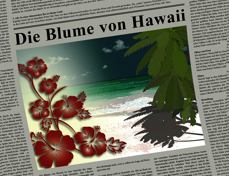 Die 1931 uraufgeführte "Kolonialoperette" ist ein typisches Produkt der 20er Jahre des vorigen Jahrhunderts. Paul Abraham zählt zu den ersten Komponisten, die in die Musik auch Elemente des damals in Europa aufkommenden Jazz einfließen ließ. In Verbindung mit den exotischen Klängen wirkt das Bühnenwerk dadurch oft wie ein Musical. Mit ein Grund, es den Klangideen des 21. Jahrhunderts anzunähern. Der Studiengang Musikalisches Unterhaltungstheater entführt sein Publikum mit Sentiment und Verve direkt in die Südsee.