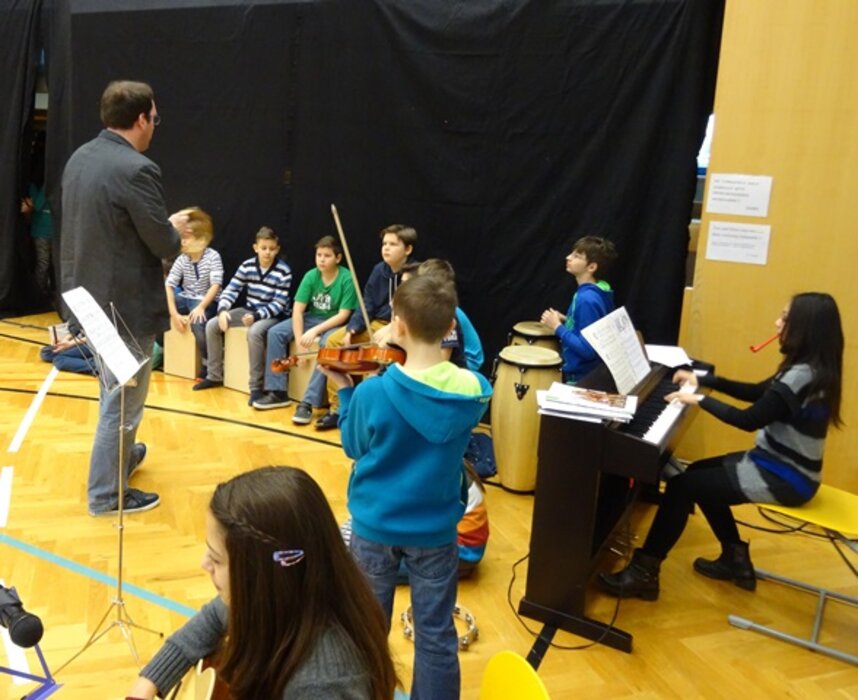 Gemeinsam mit 80 Kindern der 1. und 2. Klassen der Neuen Mittelschule Pottendorf (NÖ) entwickeln die Studierenden des Master of Arts Education jedes Jahr im Jänner innerhalb einer Woche ein Theaterstück. In Zusammenarbeit mit LehrerInnen und SchülerInnen wird nicht nur ein kreatives Projekt umgesetzt, sondern auch erforscht, wie sich künstlerische Vermittlungsformen für den Alltag in der Schule einsetzen lassen.