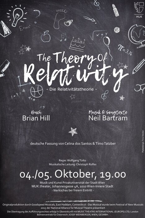 The Theory of Relativity ist ein Musical des preisgekrönten amerikanischen Duos Neil Bartram (Musik und Liedtexte) und Brian Hill (Buch) und wirft einen Blick darauf, wie unerwartet unsere Leben miteinander vernetzt sind. Egal ob man eine Katzenallergie oder eine Ansteckungsphobie hat, zum ersten oder zum zehnten Mal verliebt ist, ein Scheidungskind oder ganz einfach einzigartig ist — jeder wird sich in der deutschsprachigen Erstaufführung von The Theory of Relativity wiederfinden können.