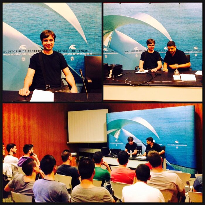 It is worth to mention that in 2013 Luminosity was used as a set-piece in the Universal Marimba Competition and from this moment his marimba compositions are included in several international competitions and are performed worldwide. The world premiere of his Double Percussion Concerto No. 1 for two multi percussionists was held during the international festival Festival de Musica Contemporanea de Tenerife in June 2015 in Spain and performed by Tuopali Duo where he also gave a lecture at the conference about his piece.